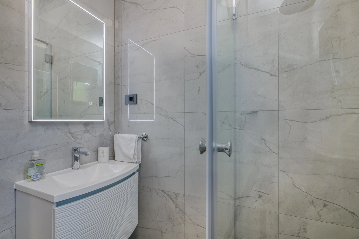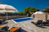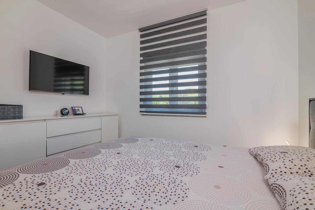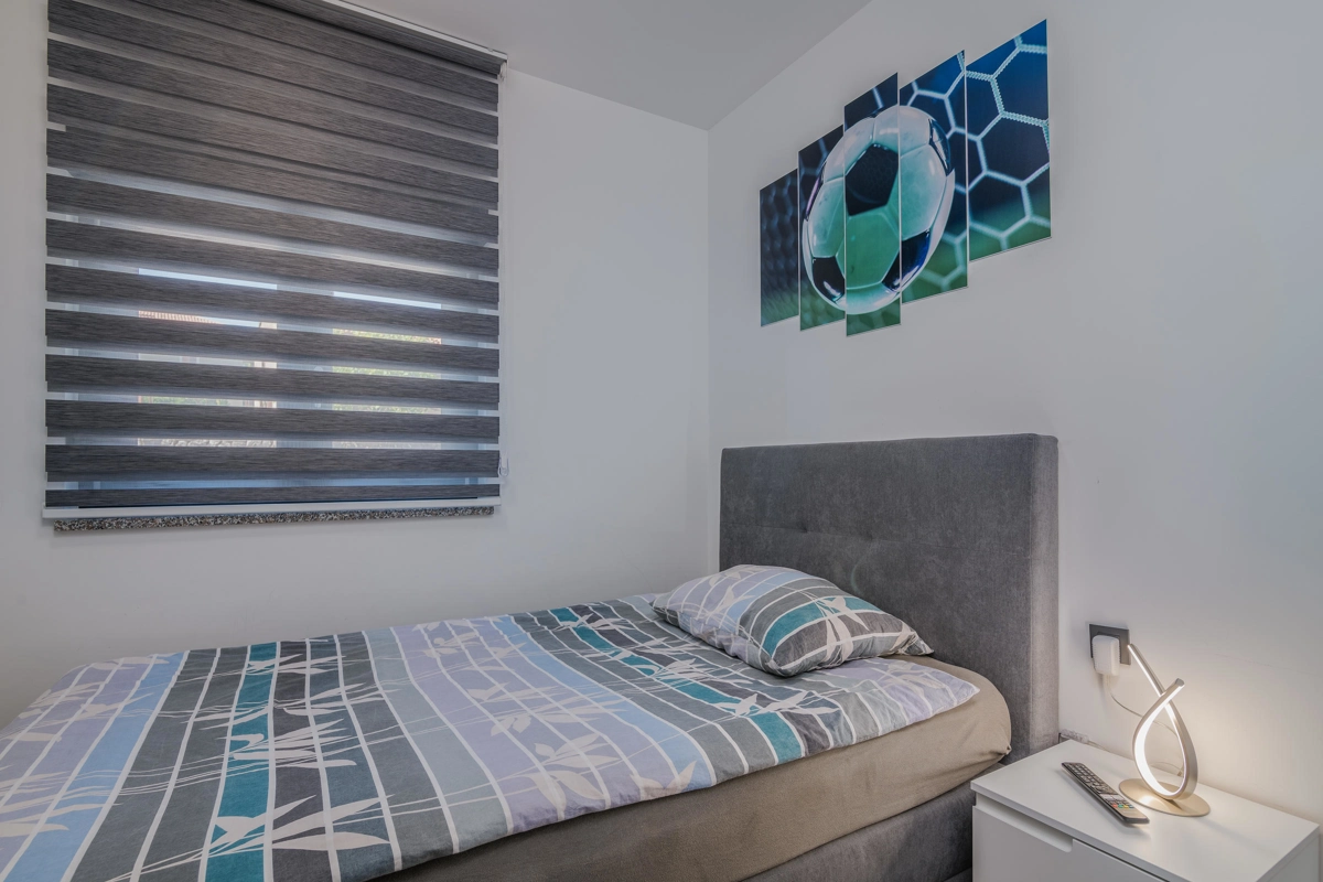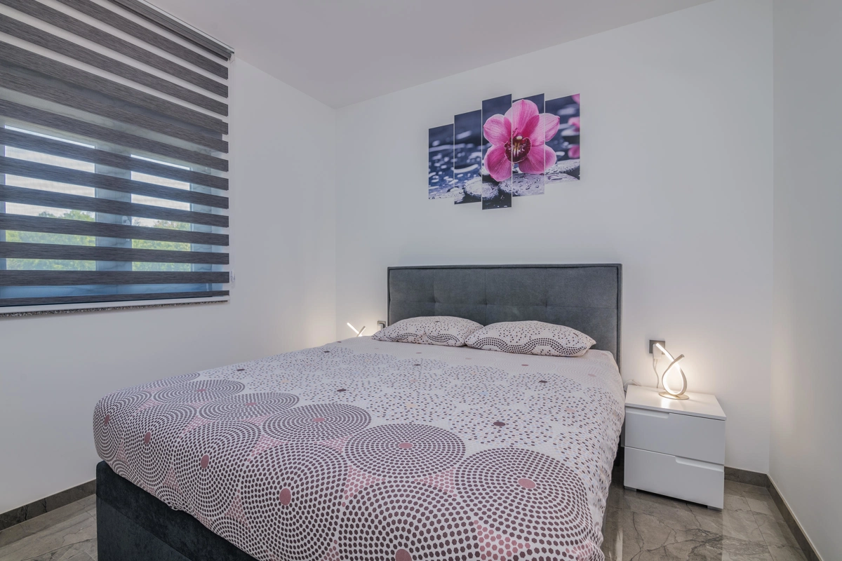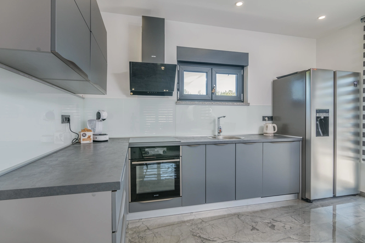 Villa Enie, eine neu erbaute, moderne Villa in Garica bei Vrbnik, verfügt über einen eigenen Pool und bietet Platz für bis zu sechs Personen. Es liegt nur wenige Autominuten von der wunderschönen Stadt Krk entfernt, wo Sie die Altstadt und die wunderschönen Strände besuchen können, sowie von Vrbnik, das für seine lokalen Weine und lokalen Souvenirläden bekannt ist. Die Villa Enie liegt vollständig im Erdgeschoss und bietet einen herrlichen Blick ins Grüne und auf den Wald, den Sie am meisten genießen werden, während Sie in dieser ruhigen Umgebung Ihren Morgenkaffee trinken. Das Haus besteht aus einer geräumigen Küche mit Esszimmer und Wohnzimmer, zwei Doppelzimmern, einem Einzelzimmer und zwei kompletten Badezimmern mit Dusche. Es gibt auch eine überdachte Terrasse mit Blick auf den Pool. Im Innenhof der Villa Enie gibt es einen privaten Swimmingpool und einen Bereich mit Liegestühlen sowie eine Außendusche und einen Grill. Villa Enie ist klimatisiert und verfügt über WLAN und einen privaten Parkplatz für mehrere Autos.
