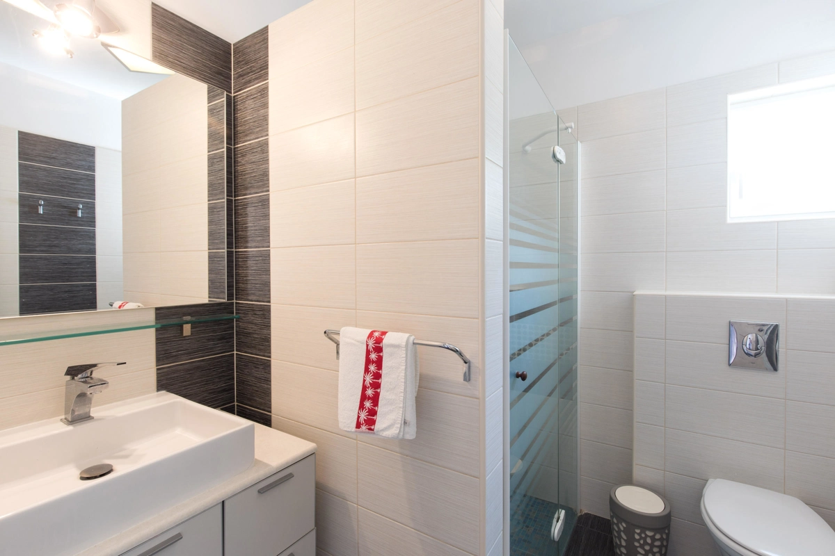 Cały apartament jest świetny...wyposażenie kuchni, sprzęt do grillowania, basen, parking, 150m do morza. Wyrozumiali właściciele. Polecam.