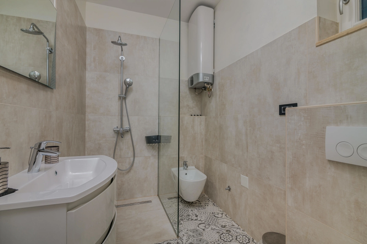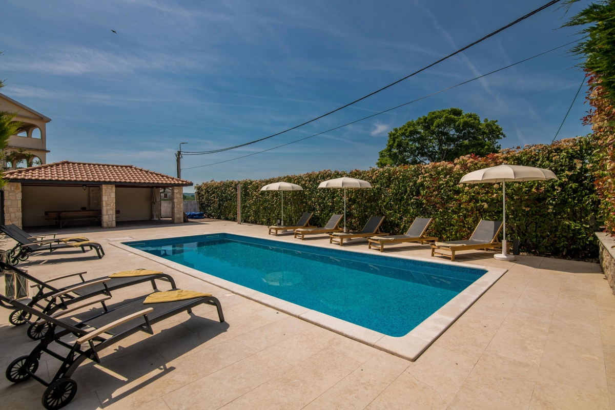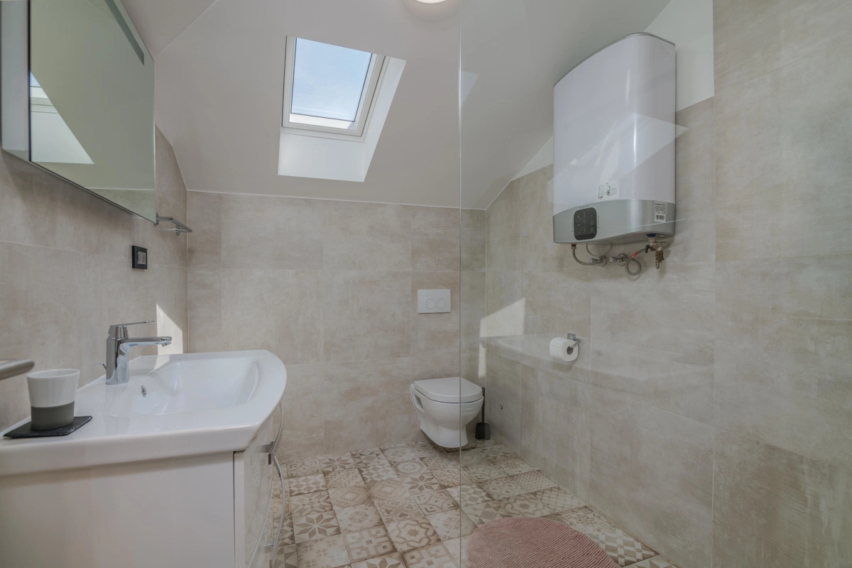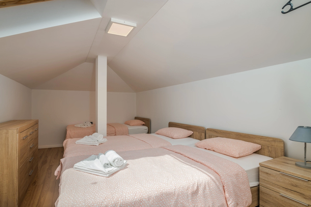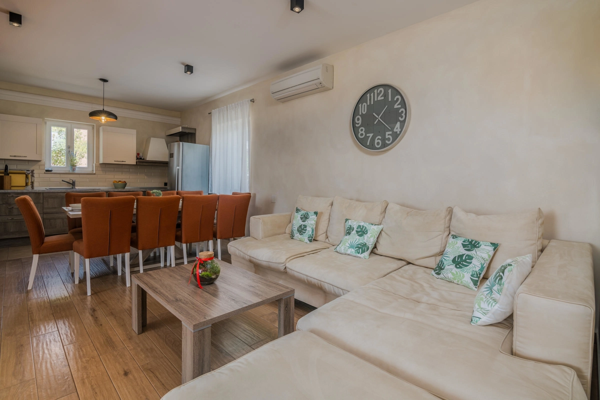 Die Villa Augusta in Malinska ist eine ideale Villa für Gäste, die vollkommene Entspannung in einer natürlichen Umgebung suchen, und gleichzeitig ist dies ein perfekter Ort aufgrund seiner Nähe zu wunderschönen Touristenattraktionen, Sehenswürdigkeiten, Stränden und ausgezeichneten Restaurants. Dieses schöne Steinhaus mit privatem Pool bietet Platz für bis zu 12 Personen, die in 5 geräumigen Schlafzimmern untergebracht werden können. Im Erdgeschoss der Villa befinden sich zwei Schlafzimmer, zwei Badezimmer mit Dusche, eine zusätzliche Toilette und ein geräumiges Wohnzimmer mit Küche und Esszimmer. Im Obergeschoss befinden sich drei Schlafzimmer und zwei Badezimmer mit Dusche. Vom Erdgeschoss aus erreichen Sie über eine überdachte Terrasse einen wunderschönen Garten mit einem Pool und einem Bereich mit Liegestühlen und einem Grill mit einem überdachten Bereich, ideal, um Zeit mit Ihrer Familie und Freunden zu verbringen. Die Terrasse im Erdgeschoss bietet einen Blick auf das Meer, und die Olivenbäume, die dieses wunderschöne Steinhaus umgeben, verleihen eine besondere mediterrane Atmosphäre. Villa Augusta ist komplett für den Aufenthalt der Gäste ausgestattet, alle Zimmer sind klimatisiert, und einige Schlafzimmer haben einen eigenen Fernseher mit ausländischen Programmen. Wenn Sie mit Ihren Haustieren kommen möchten, können Sie entspannt sein, da der gesamte Garten von einer Hecke und einem Zaun umgeben ist.
