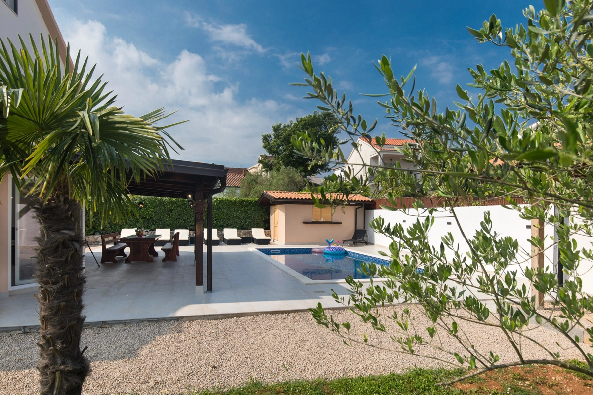 Villa Tereza liegt in der Ortschaft Vantačići und eignet sich perfekt für einen ruhigen Sommerurlaub. Sie bietet Unterkunft für bis 9 Personen. Gäste haben einen privaten beheizten Pool zur Verfügung, Grill- und Essraum im Aussenbereich scheinen für behagliche Sommer-gesellschaften wie geschaffen zu sein. Die Villa ist kinderfeundlich und genau auf die Bedurfnisse von Familien mit Kindern ausgerichtet. Es gibt im Garten fur sie eine Anzahl von Spielgeräten und sie werden gewiss keine Langeweile haben. Die Lage der Villa ist bestens, denn sie liegt in einer wunderschönen Gegend, nur 150 m vom Meer entfernt. Der Innenbereich besteht aus 4 Schlafzimmern, 3 Bädern mit Dusche, einem grossflächigen Wohnzimmer, einer ausgestatteten Küche und Esszimmer.