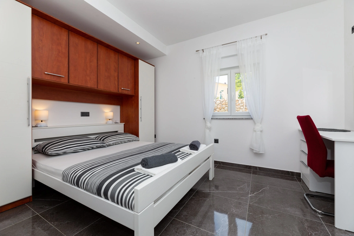 Ova moderna villa nalazi se u Garici kraj Vrbnika te je odličan izbor za sve koji su željni opuštanja, a ako poželite gužvu i razne sadržaje na par minuta imate dva turistička središta Krk i Vrbnik. U privatnosti ove ville može uživati do 8 osoba, interijer ville sastoji se od prostranog dnevnog boravka s kuhinjom i blagovaonicom, 3 dvokrevetne spavaće sobe te 3 kupaonice. U vanjskom dijelu nalazi se blagovaonica u kojoj možete jesti jela pripremljena na roštilju te privatni bazen za opuštanje i hlađenje. Dostupno je i parkiralište za nekoliko vozila, veselimo se Vašem dolasku!