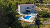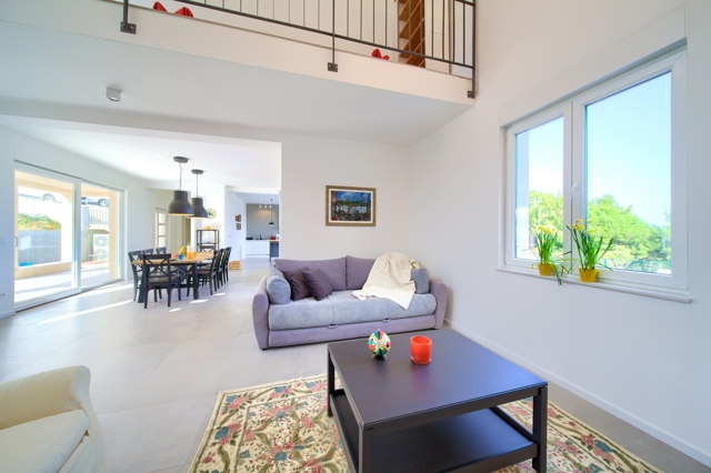 Ova zanimljiva i lijepa villa smjestila u središtu maloga sela na otoku Krku, savršena je za miran i ugodan obiteljski odmor do 8 osoba. Smještena u prirodi savršen je izbor za sve one koji žele predahnuti od gradskih gužvi, no ako im ona pomalo i počne nedostajati, grad Krk nalazi se svega 5 km od smještaja te tamo mogu uživati u raznim sadržajima ovog turističkog središta. Dizajn ove ville pomno je smišljen te je interijer kombinacija modernog i tradicionalnog stila, kuća je potpuno klimatizirana, a ima i podno grijanje. Na gornjem katu ville nalaze se 3 spavaće sobe, od kojih dvije sobe imaju vlastiti balkon s pogledom na krajolik. U prizemnom dijelu kuće nalazi se ugodan i prostran dnevni boravak s kuhinjom i blagovaonicom s kliznim vratima koje vode na vanjsku terasu. U vanjskom dijelu nalazi se blagovaonica te plinski roštilj na kojemu možete pripremati ukusne obroke. U ovome se dijelu također nalaze i vanjski bazen te potpuno ograđeni vrt zbog kojeg se ne morate brinuti za sigurnost Vaše djece ili kućnih ljubimaca koji su također dobrodošli. Odmorite svoj duh i tijelo u ovoj oazi mira i opuštanja na otoku Krku, veselimo se Vašem dolasku!
