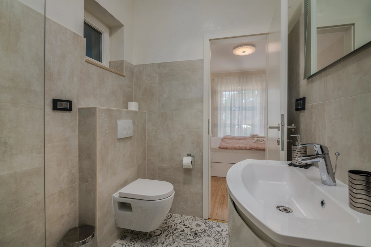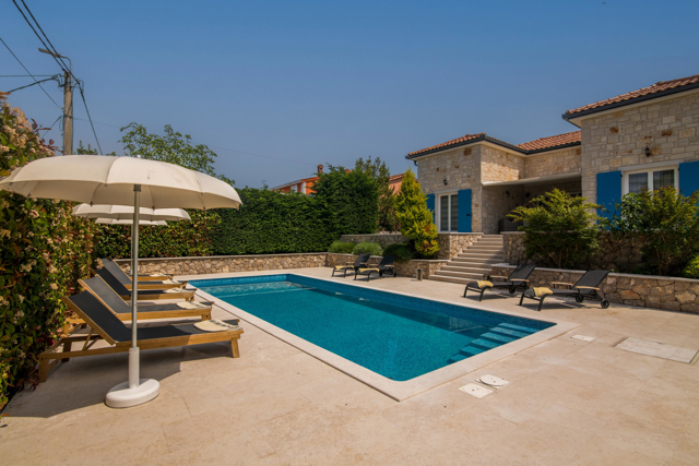 Villa Augusta a Malinska è la casa ideale per gli ospiti che cercano un completo relax in un ambiente naturale, e allo stesso tempo è un luogo perfetto per la sua vicinanza a bellissime località turistiche, attrazioni, spiagge e ottimi ristoranti. Questa bellissima casa in pietra con piscina privata può ospitare fino a 12 persone che possono essere ospitate in 5 spaziose camere da letto. Al piano terra della villa ci sono due camere da letto, due bagni con doccia, ancora un servizio igienico e un ampio soggiorno con cucina e sala da pranzo. Al primo piano ci sono tre camere da letto e due bagni con doccia. Dal piano terra, attraverso una terrazza coperta, si raggiunge un meraviglioso giardino con piscina e zona con sdraio e barbecue con zona coperta ideale per trascorrere del tempo con la famiglia e gli amici. La terrazza al piano terra offre una vista sul mare e gli ulivi che circondano questa meravigliosa casa in pietra conferiscono una speciale atmosfera mediterranea. Villa Augusta è completamente attrezzata per il soggiorno degli ospiti, tutte le camere sono climatizzate, e alcune camere hanno la propria televisione con programmi stranieri. Se vorrebbe venire con i animali domestici, l'intero giardino è circondato da una siepe e da un recinto.