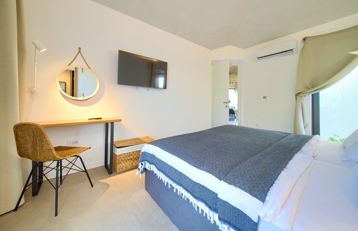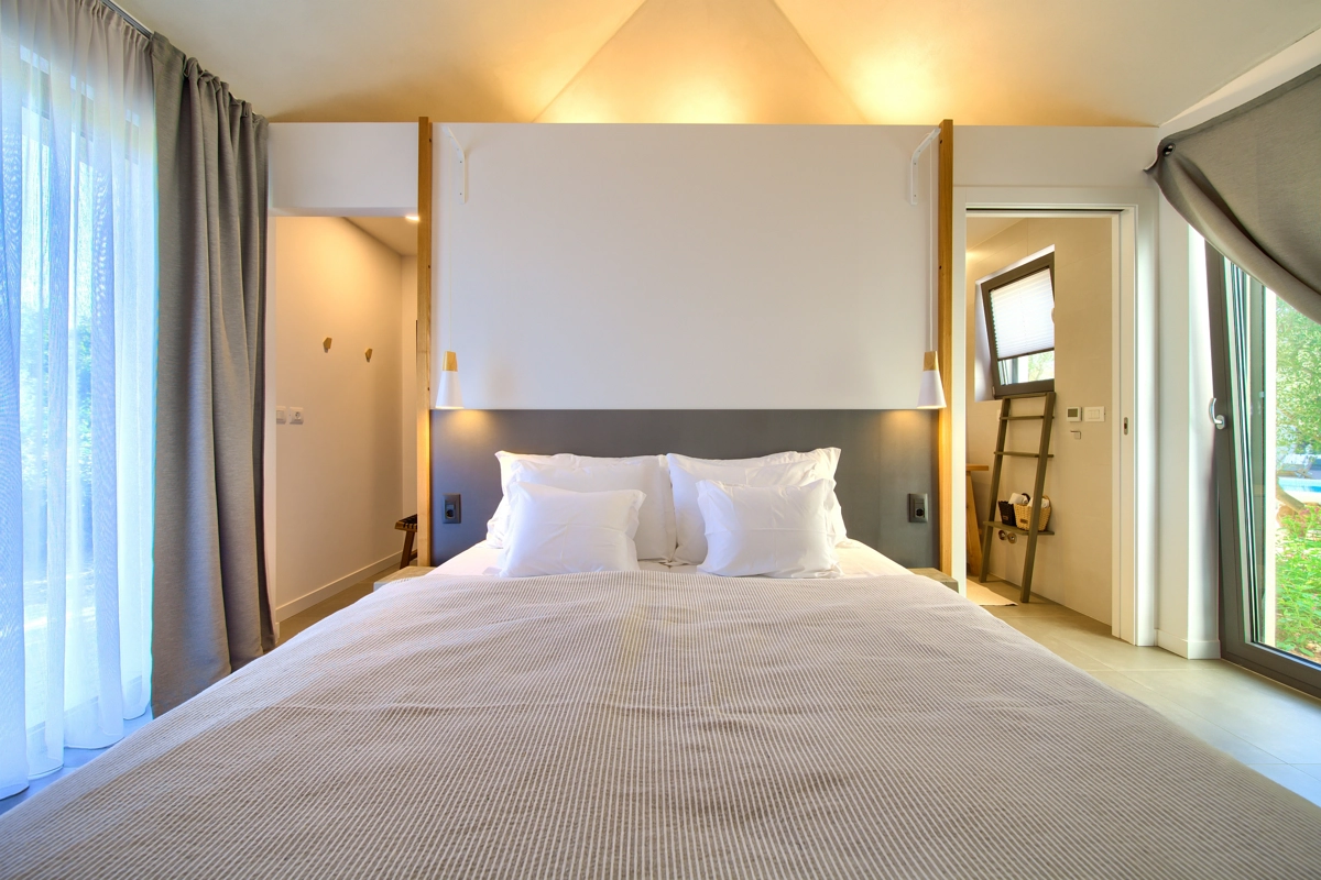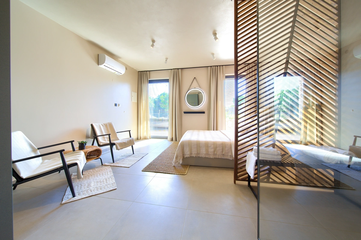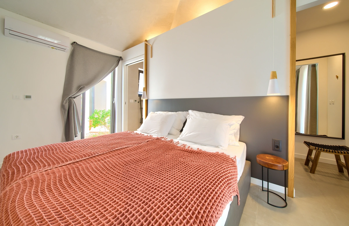 La struttura della casa, interessante e suggestiva, in realtà è divisa in 3 parti, la prima è dotata dʾʾingresso e la reception con parcheggio anteriore e di accesso alla casa più grande con un soggiorno, una cucina moderna completamente attrezzata, una sala da pranzo e 2 camere da letto con bagni privati e una cabina armadio. Le camere da letto hanno entrambe lʾaccesso alla piccolla terrazza e all´ atrio centrale con la fantastica piscina ed una loggia con barbecue e sala da pranzo esteriore. Dal cortile centrale si accede alla casa più piccola, dominata da una strepitosa cucina a isola come una soluzione di grande tendenza e prestigio ideale per preparare pasti gustosi. Anchʾessa dispone di 2 camere da letto con bagni privati, cabina armadio e terrazze private ed è accessibile tramite area pranzo allʾaperto con tanto spazio per trascorerre momenti estivi unici ed indimenticabili in allegra compagnia.