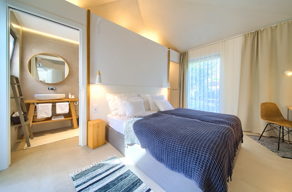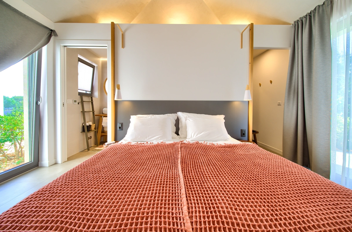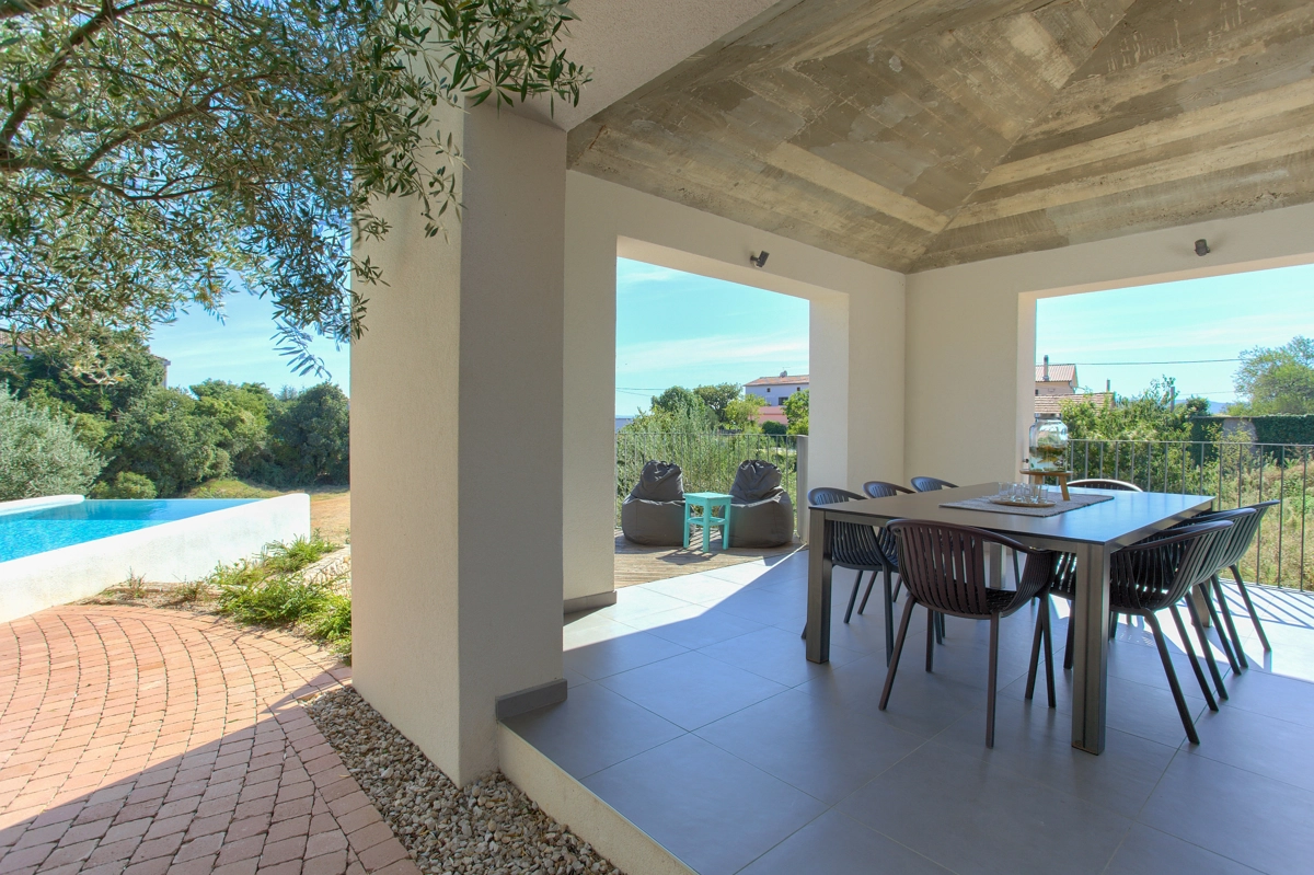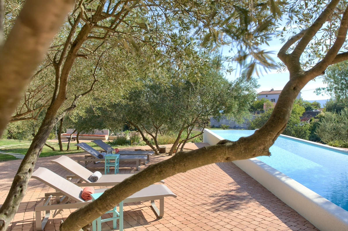 Questa proprietà singola di generose dimensioni, un vero gioello dellʾarchitettura, decisamente molto particolare, immersa in unʾoasi di tranquilità e di lusso tra ulivi secolari e suoni della natura è situata a Linardići sullʾisola di Krk e può ospitare fino a ben 10 persone.