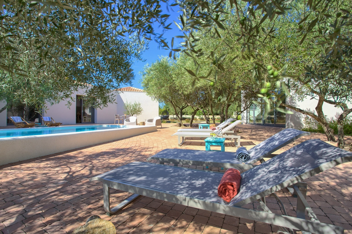 La splendida residenza circondata da un grande spazio esterno si compone di un corpo centrale con una stupenda infinity piscina e di più corpi che si sviluppano ai latti del cortile e un giardino straordionario ricco di essenze e profumi tipicamente mediterranei. La logica della natura, più precisamente degli ulivi, definiva la logica spaziale della casa nel pieno rispetto del paesaggio e dellambiente.