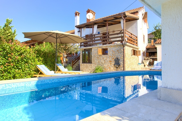 L'affascinante e rustica Villa Oleandra con piscina riscaldata e vasca idromassaggio si trova a Risika sull'isola di Krk, a soli 2 km dalla famosa spiaggia sabbiosa di Sv.Marak. La villa è stata concepita come un unico oggetto composto da due case di due piani, quindi è ideale per 2 famiglie che vogliono trascorrere una vacanza insieme e allo stesso tempo godere della propria privacy. Ogni casa è composta da un soggiorno con cucina e sala da pranzo, due camere da letto, un bagno e un toilette. Casa ha due ampie terrazze e una taverna come luogo ideale per socializzare nelle calde serate estive. Durante il giorno puoi goderti la piscina o la vasca idromassaggio o semplicemente rilassarti all'ombra con vista sul meraviglioso giardino mediterraneo, e per i bambini c'è anche un'area giochi. La casa è climatizzata, dispone di Wi-Fi, satellite TV e animali domestici sono i benvenuti con preavviso e con il costo aggiuntivo.