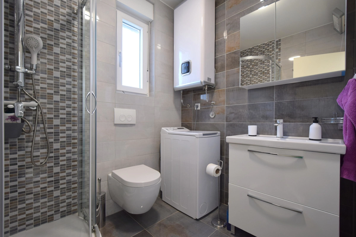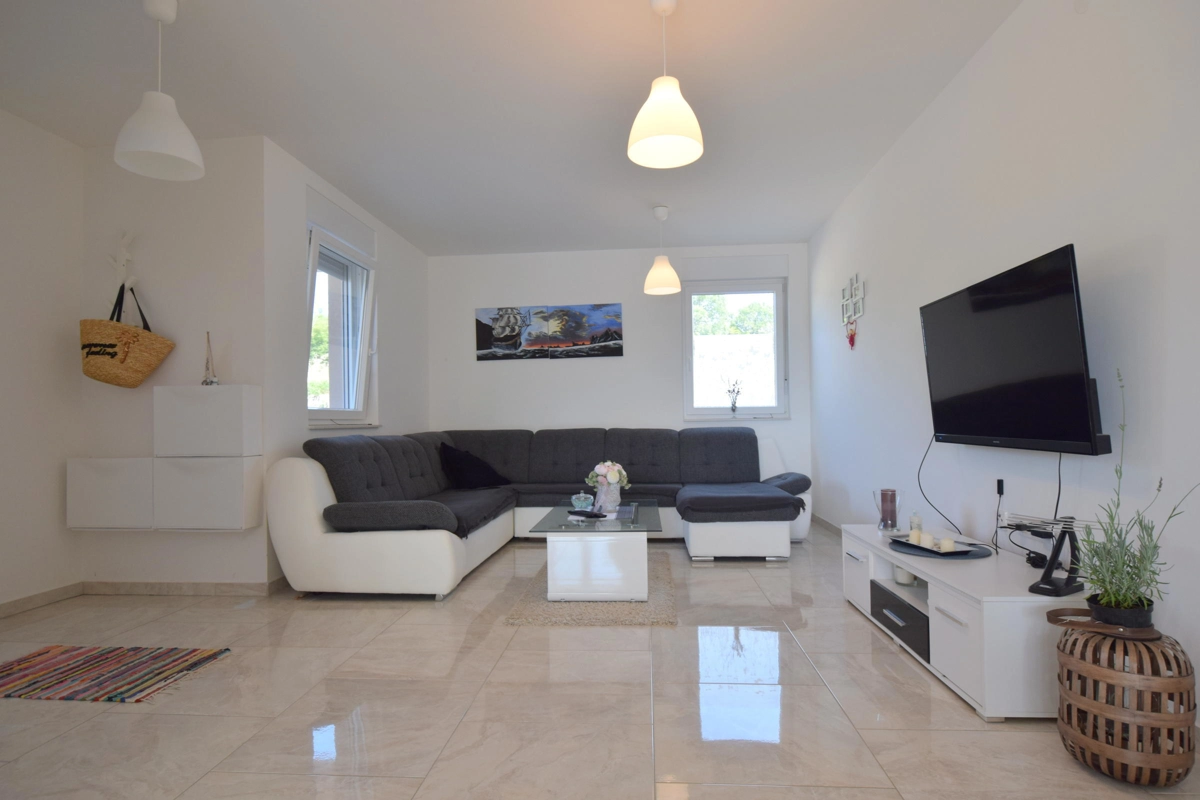 Villa Sara con piscina è una casa recentemente rinnovata a Barušići, vicino a Malinska, sull'isola di Krk. Questa villa fa parte di una casa bifamiliare, ma a prescindere da ciò offre una completa privacy. È diviso in due piani. Al piano terra della casa c'è un bel soggiorno con sala da pranzo e una cucina ben attrezzata. C'è anche un bagno con doccia. Al primo piano ci sono tre camere da letto e due bagni con doccia. Due camere hanno il proprio balcone con vista sull'oliveto secolare. Il cortile è abbastanza grande per parcheggiare piu auto, ha un barbecue e una doccia esterna, e davanti alla casa c'è una terrazza dove sedersi e rilassarsi con la famiglia e gli amici, oltre a una spaziosa piscina e sedie a sdraio per prendere il sole. Trascorrerai sicuramente una vacanza piacevole e rilassante a Villa Sara!