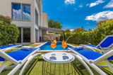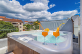 This modern villa is located in the center of Malinska on the island of Krk, only 200 meters from the sea and can accommodate up to 8 people. The outside of the house is designed to relax in the heated pool, fresh air and sun on the sun deck. You can also enjoy dinners prepared on the outdoor grill. The exterior is connected to the ground floor of the house which consists of a spacious living room, kitchen with dining area and bathroom. The first floor consists of 3 bedrooms and two luxurious bathrooms. The top floor of the villa is very attractive because it has a roof terrace with kitchen, deck chairs and jacuzzi. While enjoying the jacuzzi you have a view of the center of Malinska and the sea, view ideal for warm summer evenings. Guests have a parking lot and a sauna. Long warm summer can begin!