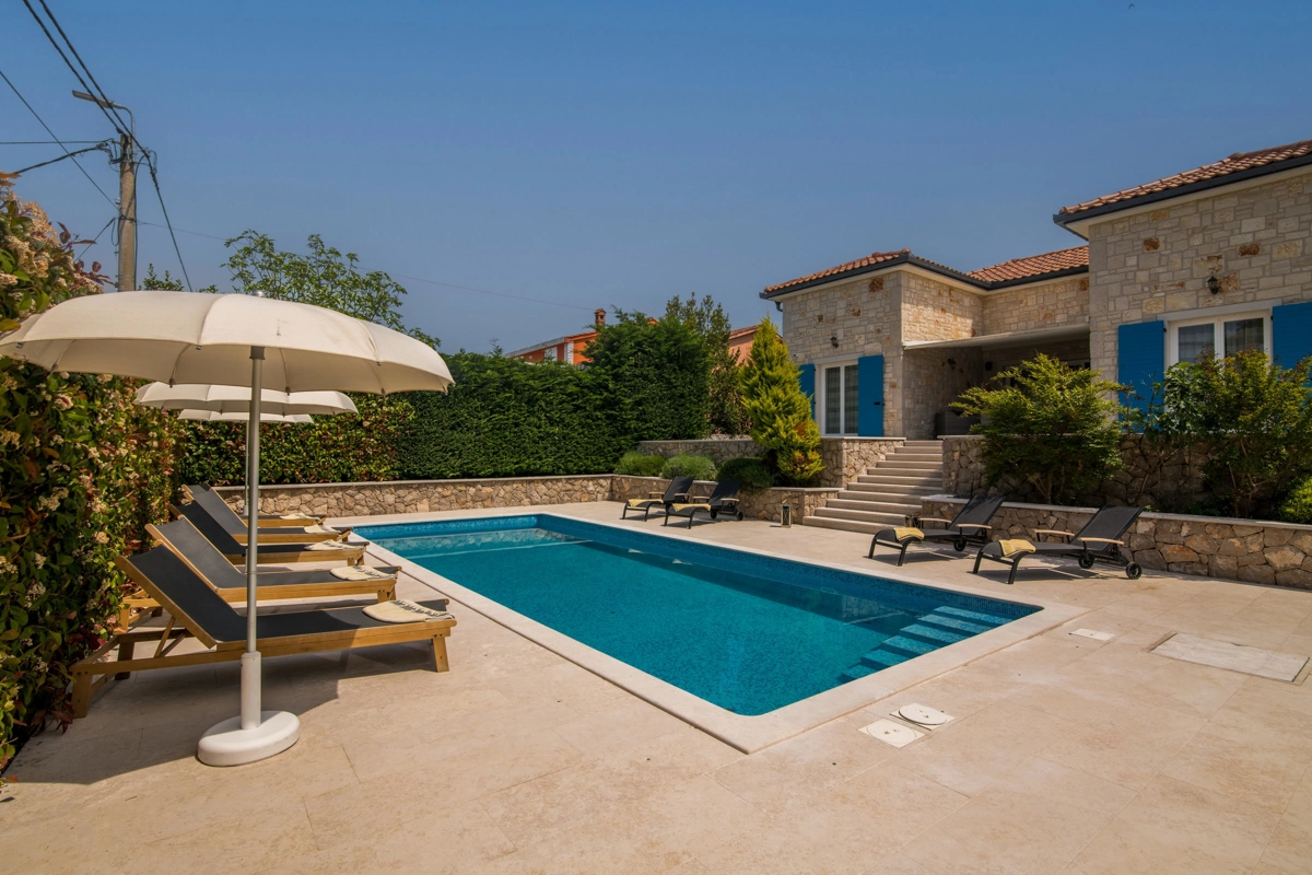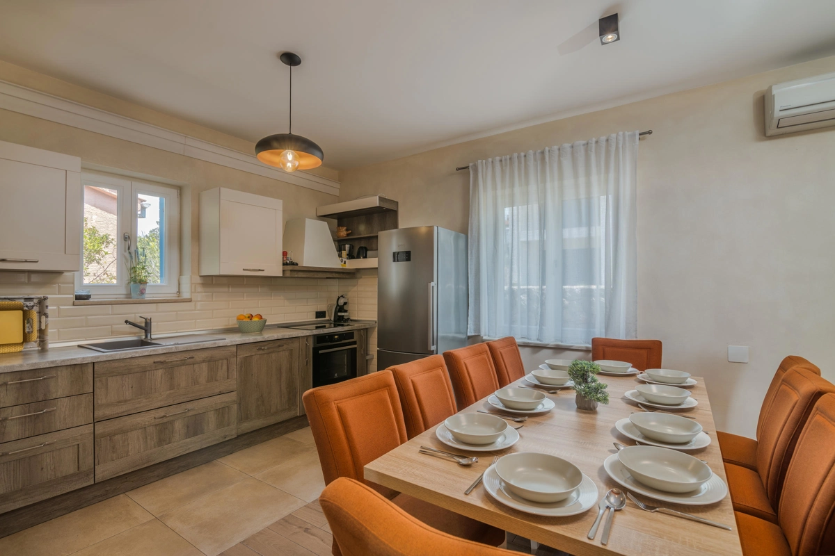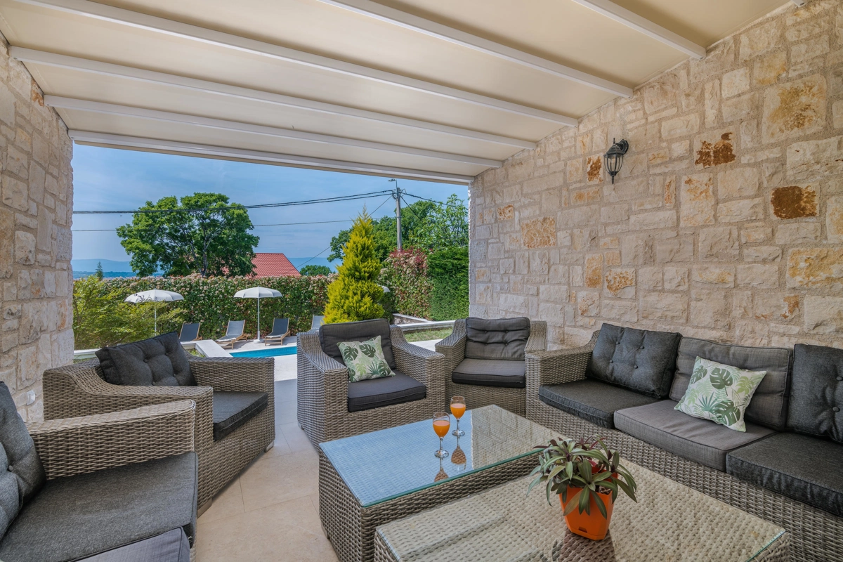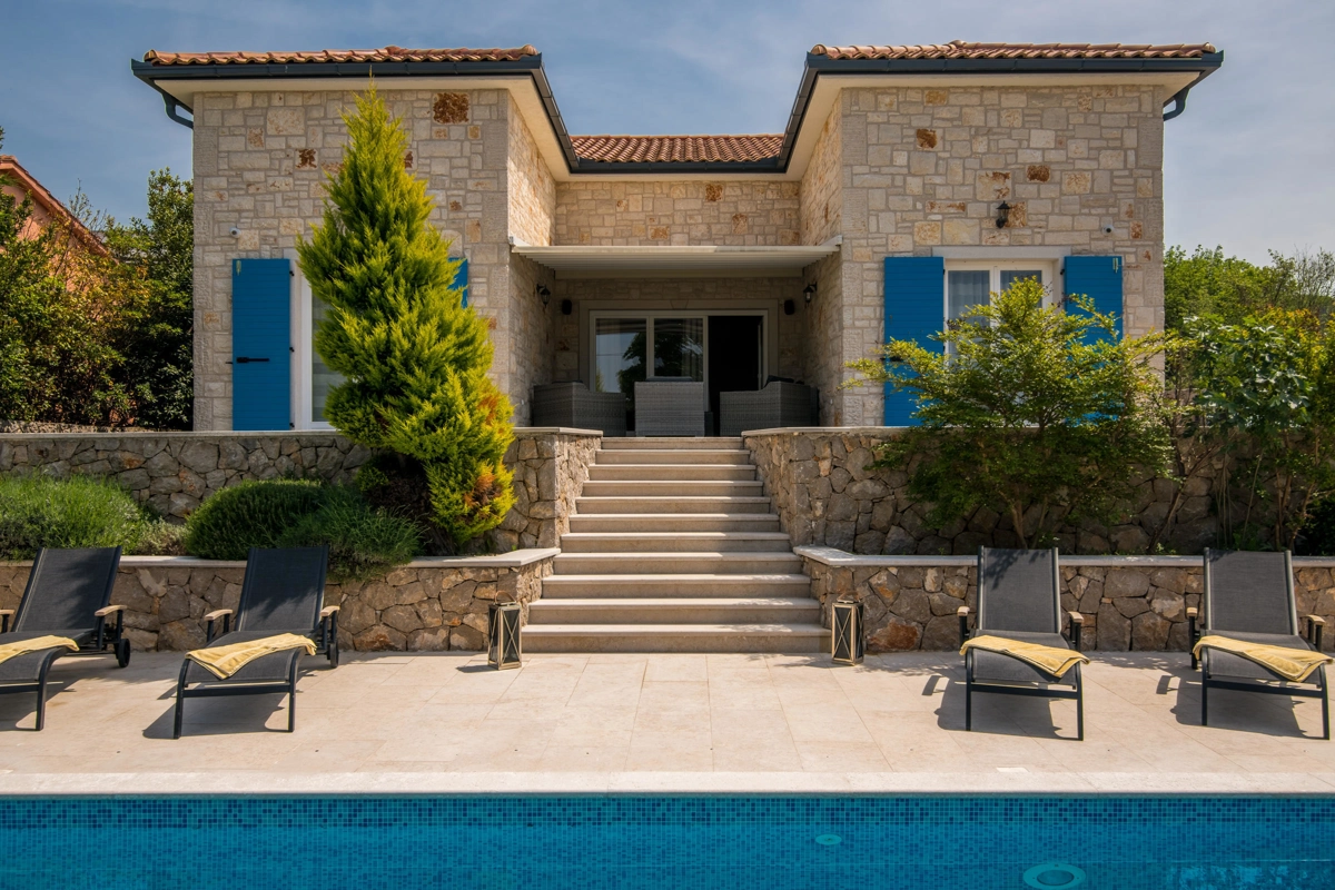 Villa Augusta in Malinska is an ideal place for guests seeking complete relaxation in a natural environment, and at the same time this is a perfect place due to its vicinity to beautiful tourist spots, attractions, beaches and excellent restaurants. This beautiful stone house with a private pool can host up to 12 people who can be accommodated in 5 spacious bedrooms. On the ground floor of the villa there are two bedrooms, two bathrooms with shower, an additional toilet, and a spacious living room with kitchen and dining room. Upstairs there are three bedrooms and two bathrooms with a shower. From the ground floor, through a covered terrace, you can reach a wonderful garden with a swimming pool and an area with deckchairs and a barbecue with a covered area great for spending time with your family and friends. The terrace on the ground floor offers a view of the sea, and the olive trees that surround this wonderful stone house give a special Mediterranean atmosphere. Villa Augusta is fully equipped for the stay of guests, all rooms are air-conditioned, and some bedrooms have their own television with foreign programs. If you want to come with your pets, you can be relaxed because the entire garden is surrounded by a hedge and a fence.
