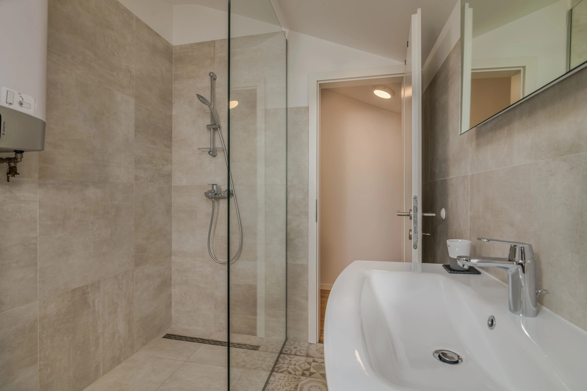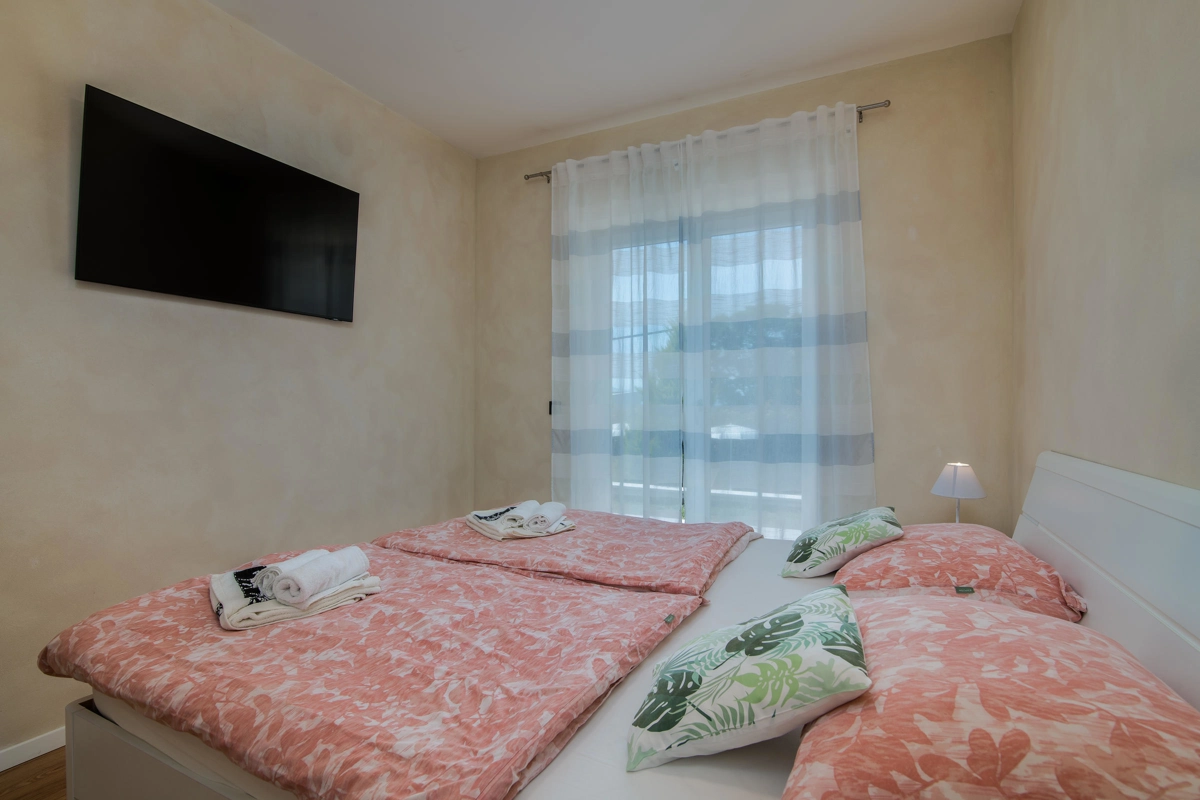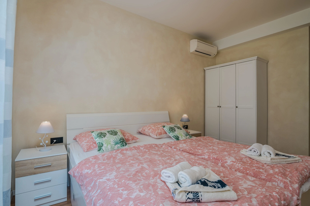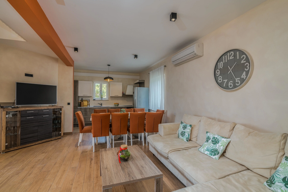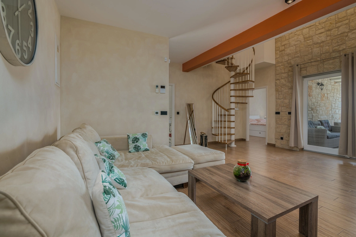 Villa Augusta in Malinska is an ideal place for guests seeking complete relaxation in a natural environment, and at the same time this is a perfect place due to its vicinity to beautiful tourist spots, attractions, beaches and excellent restaurants. This beautiful stone house with a private pool can host up to 12 people who can be accommodated in 5 spacious bedrooms. On the ground floor of the villa there are two bedrooms, two bathrooms with shower, an additional toilet, and a spacious living room with kitchen and dining room. Upstairs there are three bedrooms and two bathrooms with a shower. From the ground floor, through a covered terrace, you can reach a wonderful garden with a swimming pool and an area with deckchairs and a barbecue with a covered area great for spending time with your family and friends. The terrace on the ground floor offers a view of the sea, and the olive trees that surround this wonderful stone house give a special Mediterranean atmosphere. Villa Augusta is fully equipped for the stay of guests, all rooms are air-conditioned, and some bedrooms have their own television with foreign programs. If you want to come with your pets, you can be relaxed because the entire garden is surrounded by a hedge and a fence.