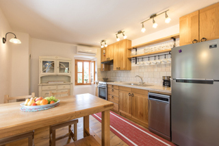 This spacious property consists of two newly renovated stone villas with swimming pool located in a quiet part of the island of Krk, due to that they are created for a relaxing holiday. These two villas can accommodate up to 14 people who have access to a large parking lot for several vehicles. At the back of the larger house there is a swimming pool, but also an outdoor area for socializing which consists of a kitchen, a refrigerator for drinks, an ice maker and a large TV. The living space is organized within two houses, one of which is a two floor stone house with kitchen, living room and dining room on the ground floor, upstairs is a large bedroom with gallery and bathroom. The second, larger house contains two separate rooms, one of which is on the ground floor and consists of a kitchen, dining room and living room with two single beds, a bathroom and bedroom. This part of the house has direct access to the pool. On the first and second floor of this house there is a comfortable space with living room, kitchen and dining room, toilet and bedroom with two single beds on the first floor and two bedrooms with bathroom on the second floor. The back terrace has access to the pool with natural shade and outdoor showers, also there is barbecue. This property is a great choice for families who want to enjoy privacy and summer refreshments and socializing.